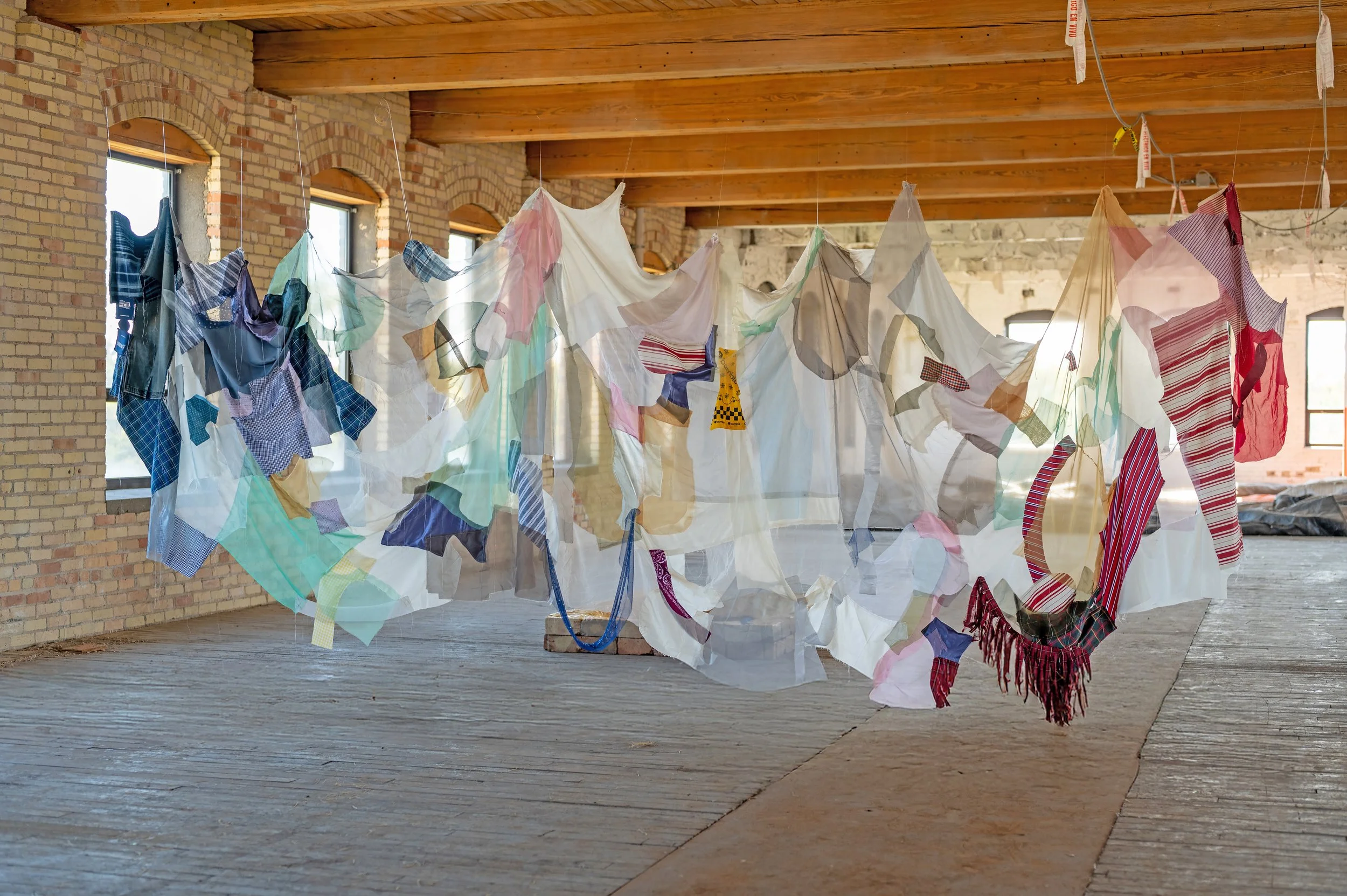 site-specific textile installation. Donated garments and fabrics cut from vintage clothing patterns, with reclaimed and repurposed materials